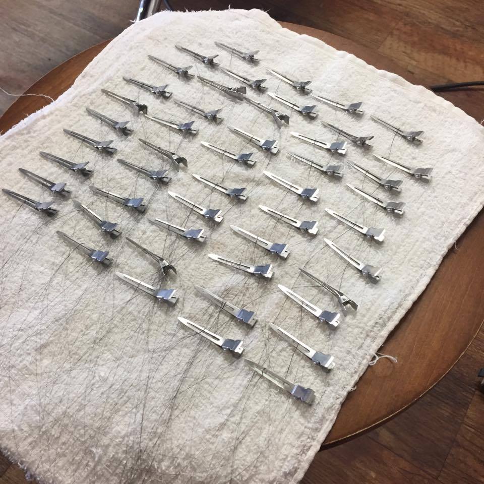 ファイバー毛(耐熱形状記憶毛)200本を結んでいきます。