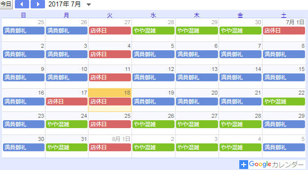 2017年7月18日現在の混雑状況です。