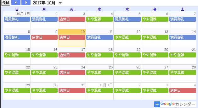 2017年10月10日現在の混雑状況です。