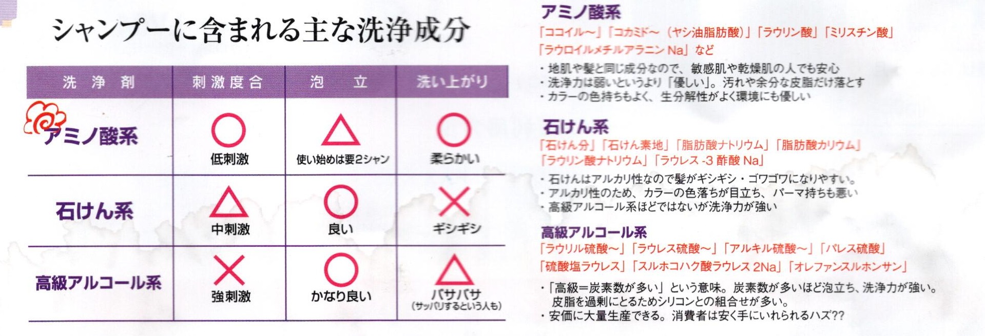 シャンプーの洗浄成分は、アミノ酸系がオススメでその中でも