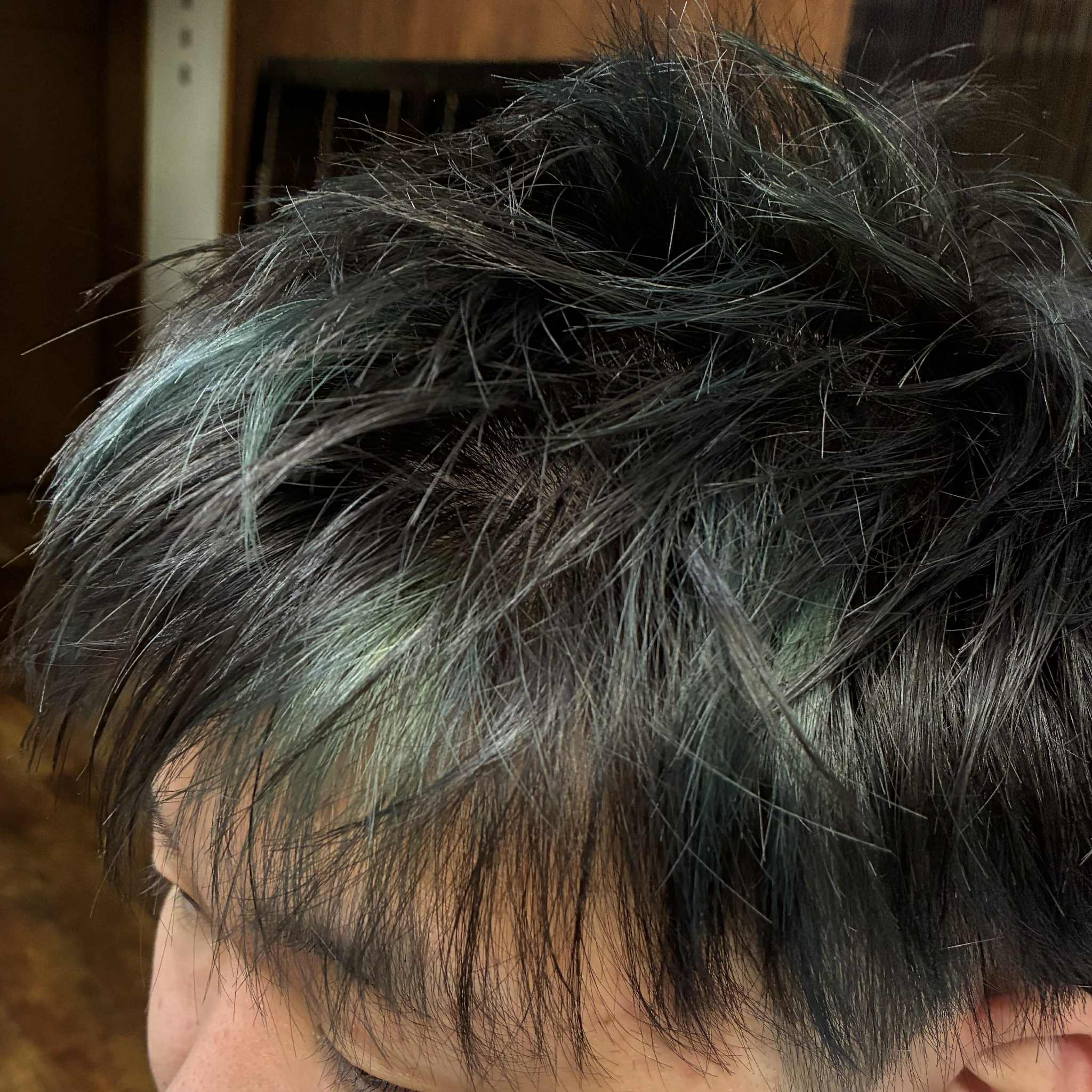 メンズヘア・ツーブロック・ハイライト・モスグリーン